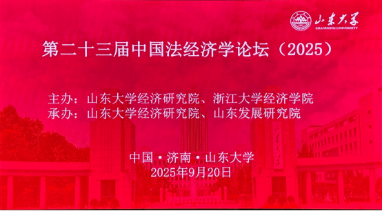 2025年9月20日至21日,由山东大学经济研究院与浙江大学经济学院联合主办的第23届中国法经济学论坛在山东大学(中心校区)成功举办。本届论坛以“法经济学前沿议题与中国实践”为主题,聚焦法律制度变迁、数字经济与绿色发展背景下的相关研究,吸引了来自全国高校与研究机构的多位专家学者,围绕司法改革、制度创新、企业行为、碳金融、ESG监管、人工智能治理等议题展开深入交流与讨论。